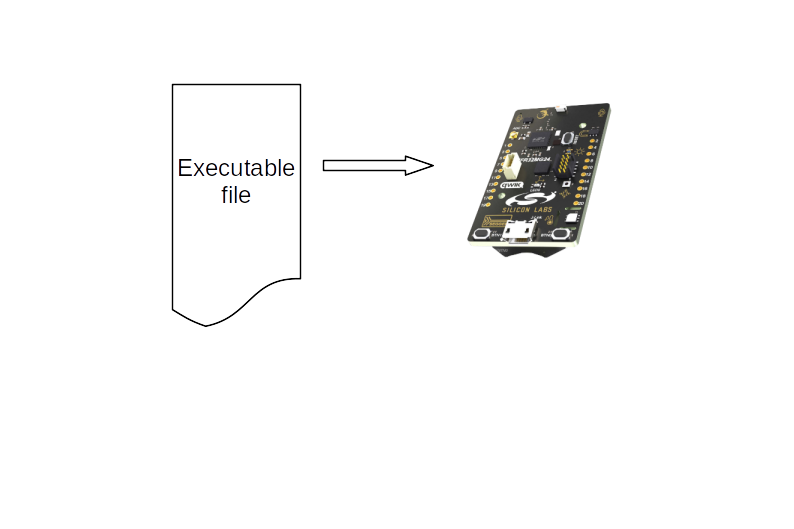 Transferring the executable file to the microcontroller board can be done in several ways: